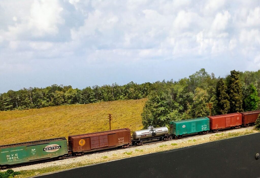 I always wanted the time, place, and space to build a moderately large model railroad. The plan was a double-track mainline (NYC) with a long branch line (IRR) for local switching. The opportunity came in 2019 when I moved to a Texas home with a two-car attached garage. Negotiations with the boss came down to a need to park her car in the garage, and least for storage and safety from the sometimes cruel Texas hailstorms. The design was made and construction begin in February 2020. Today (April 2023), the benchwork is complete, and the branch line track is laid and wired. There are two sections that are movable to meet the aforementioned car park. The double track mainline is plotted with a 14 track staging yard in place, and will include DeWitt yard, a 14 track classification yard handling east – west traffic from Selkirk to Buffalo. There will be an industrial area supporting a large car parts manufacturing plant, and heavy automobile traffic will be seen between Detroit and eastern markets.