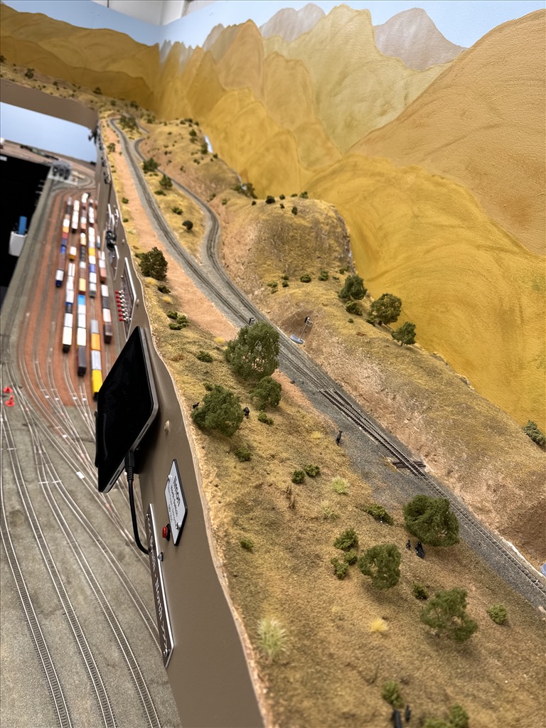 Frank’s N scale layout models the UP and the BNSF railroads in central California from Mojave through Tehachapi to Fresno in the modern era. The main room is about 400 square feet, while a second room of about 120 square feet has two staging yards worked by a “mole” plus the dispatcher. Also, a clerk works outside the layout. The layout is double decked with the valley on the lower level and mountains on the upper level. Frank has held op sessions for more than ten years, and has gradually added lower-level lighting, signaling, detection, automated staging, a dispatcher panel, and JMRI. The scenery is well underway and the scene around Tehachapi Loop is spectacular.
