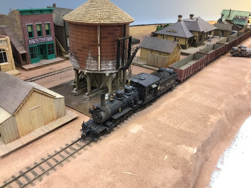 Mark’s double-deck narrow gauge railroad occupies an area of 14 X 38 feet, with a helix connecting the two levels. It models the portion of the RGS from Ridgway to Vance junction where the branch to Telluride starts plus a reverse loop that represents Ophir and points south. The other part of the layout is the D&RGW from Ridgway to Montrose (hidden staging).  The track is hand laid and is 70% complete.  The excellent structures are both kit and scratch built as well as many scratch-built pieces of rolling stock. Locomotives are all from PBL.