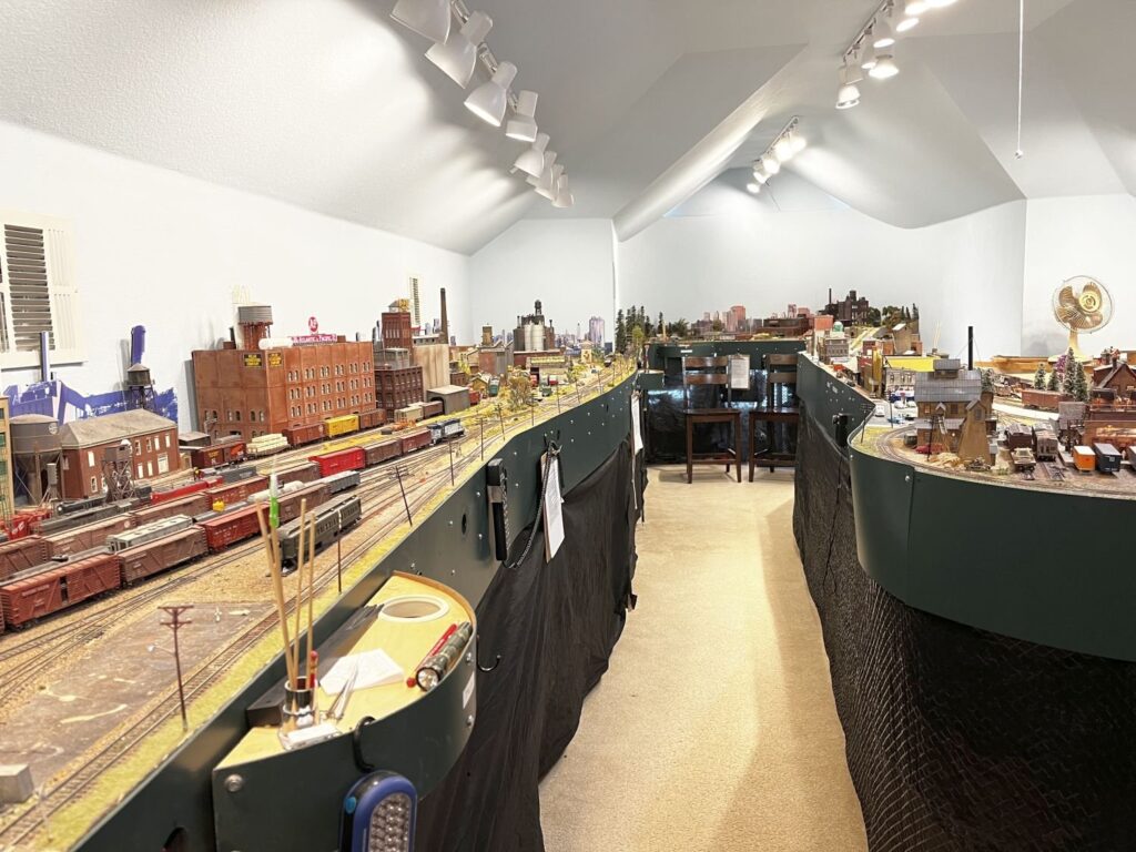 Mike Mackey’s 39′ x 19′ Texas and St. Louis Railroad is an operational layout having many jobs to make the railroad come alive. Mike’s layout is based on the history of the Texas and St. Louis (T&SL) which went into receivership in the late 1880’s. The railroad emerged from bankruptcy and re-branded as the St. Louis Southwestern Railroad. At one time it was the second-longest narrow-gauge railroad in the United States. It stretched from East St. Louis, Missouri to Gatesville, Texas, all narrow gauge.