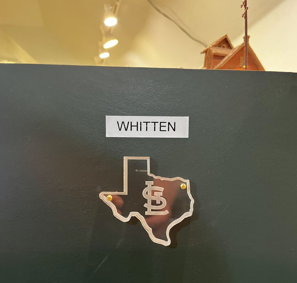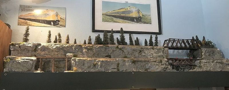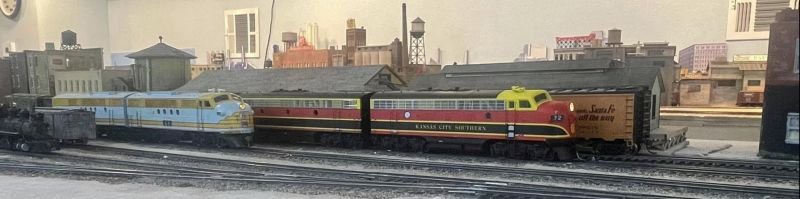 Texas and St. Louis layout currently allows for 5 operators and a dispatcher. All trains run extra with the exception of passenger service and Blue Streak Merchandise. Construction on the layout begin in March of 2019. The scenery is roughly 85% complete at this time. The trains are controlled by NCE DCC. The pike uses JMRI for dispatching and car inventory. Currently, the narrow gauge is not in service pending additional expansion which should be completed by the mid of 2023. We assume the expansion is to accommodate his “occasional steam”. There is a 10-track staging yard that represents Texarkana and points north. Trains arrive and depart Tyler yard where they are broken down and reassembled for departure.