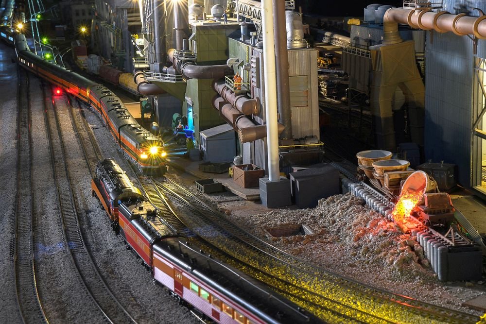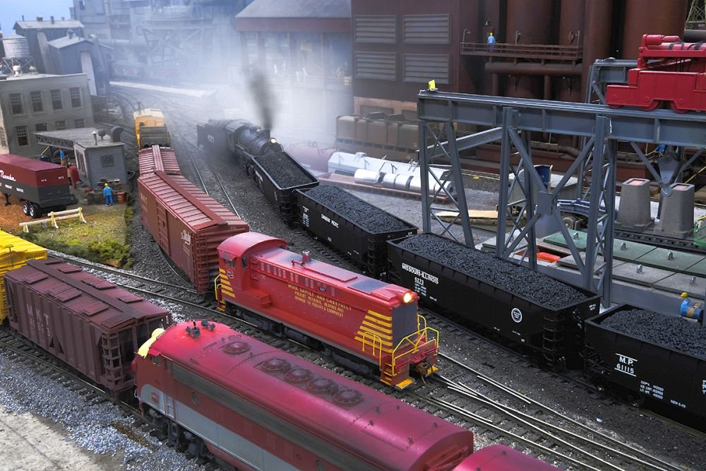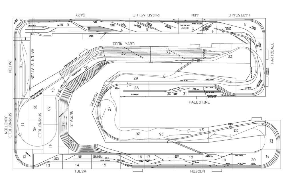 TNMRC has weekly Rail-Ops sessions using JMRI Operations and the layout features three mainlines for continuous rail traffic with long sidings, two large yards, and several industries. The HO layout scenery is complete and features many industries including the U.S. Steel Mill, Intermodal Yard, Cargill Grain Elevator, Amtrak Station, large city, small farm, and a Frisco Railroad Museum, just to name a few. With the double mainline with long sidings and the mountain line, members can run 50-car trains!